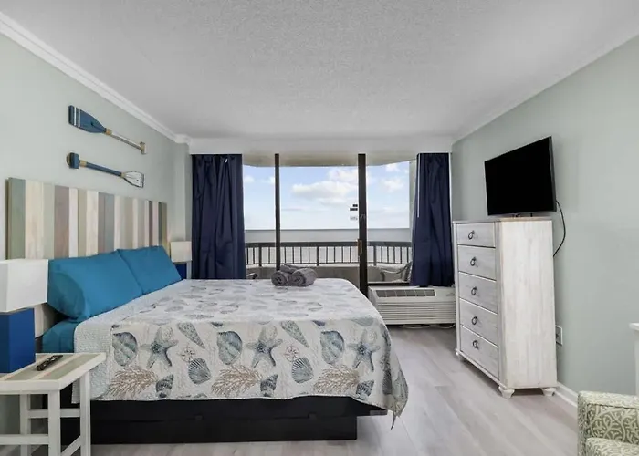 Boasting a location 4.7 km from Chapin Memorial Park, Oceanfront King All Amenities Pools W69 Myrtle Beach villa provides a patio with sea views. At this property, located within 10 minutes' drive of the sandy parkland "Myrtle Beach State Park", guests can enjoy horse riding and fishing.